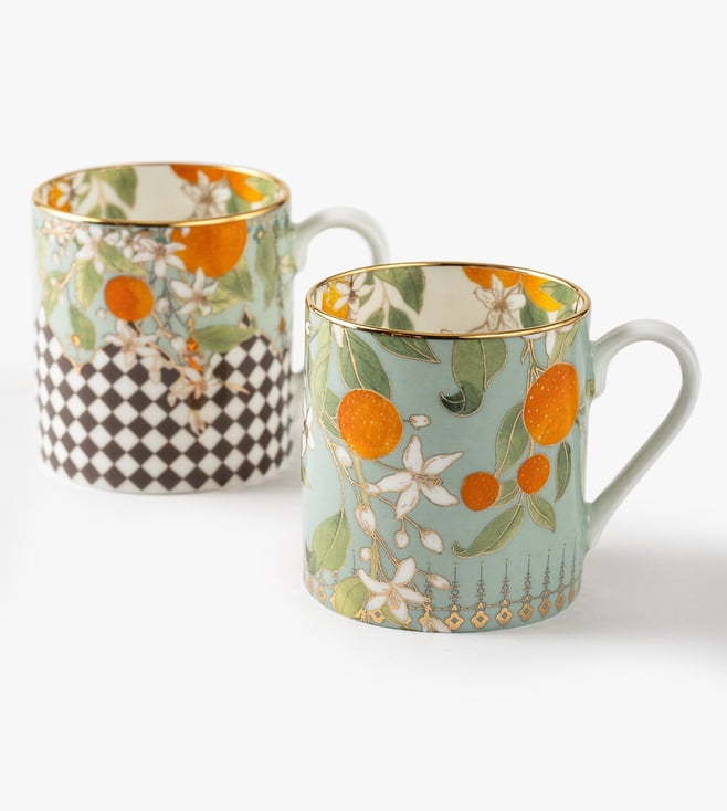 Wonderland Hand Painted Ceramic Coffee Mug - Set Of 2