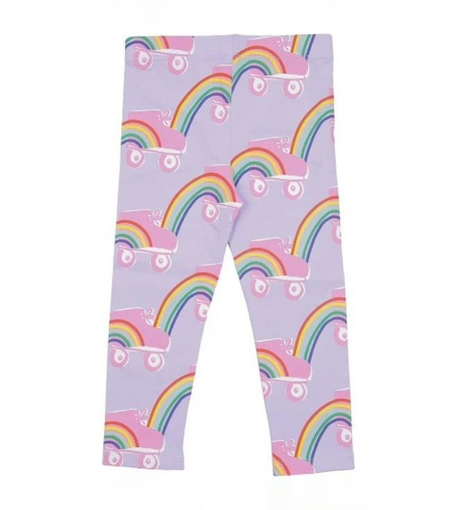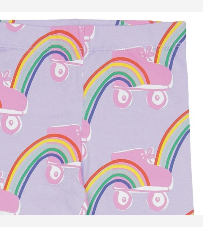 Cute lilac purple leggings from Stella McCartney Kids. Made in soft, stretchy organic cotton jersey, they are printed with playful roller skates and rainbows for a fun finish.