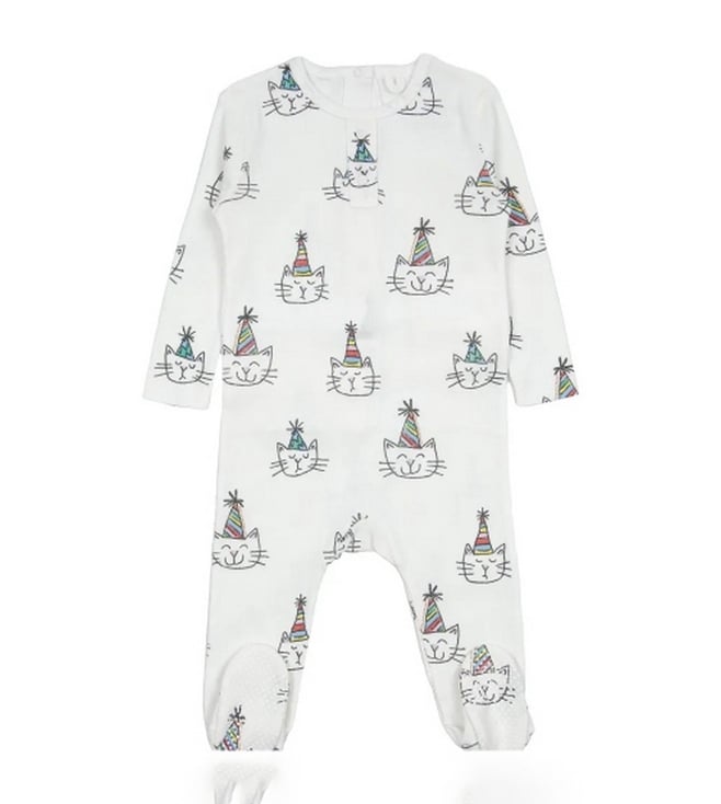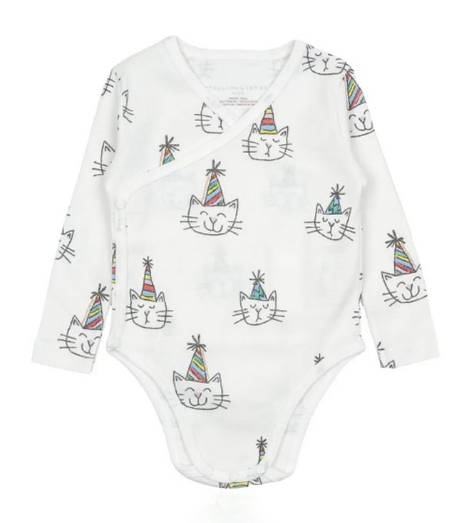 Stella McCartney Kids White Cat Printed Babygrow Set