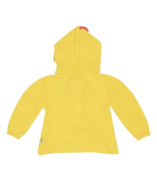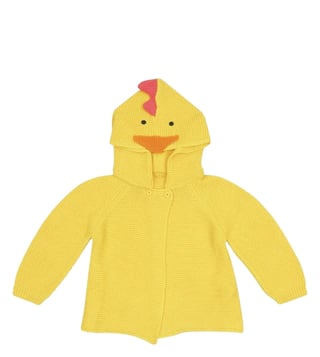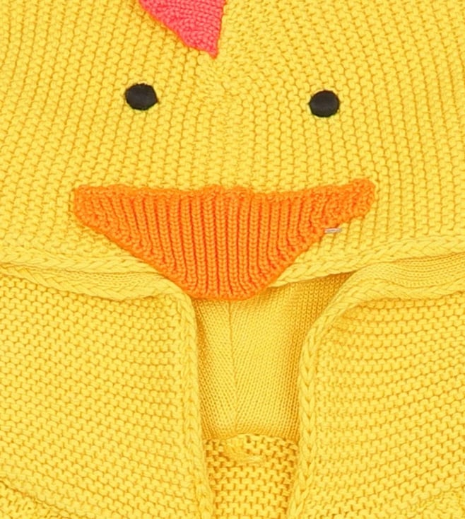Everyday style gets a fun twist with this hooded cardigan. Featuring a knitted construction, it showcases a delightful chick motif that adds a playful touch. Designed with a comfortable hood, it balances charm and practicality seamlessly. Perfect for kids who love cheerful patterns and cozy layers.