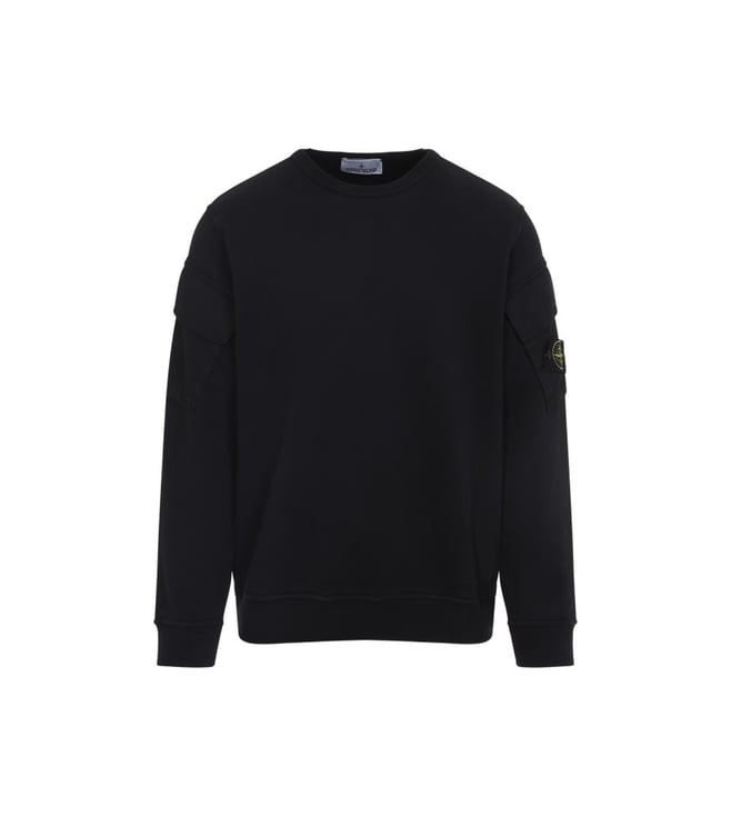 Elevate your style with the Stone Island Black Sweatshirt. Stone island black juniper cotton sweatshirt. Pure black cotton sweatshirt, round neck, long sleeves with flap pockets, signature patch logo on the right sleeve, ribbed cuffs and hem, straight hem. Products purchased from Darveys are supported exclusively by the warranty/exchange policies of Darveys and its partner boutiques. Brand owners and their channel partners are not responsible for exchange/warranty services for items purchased through Darveys.