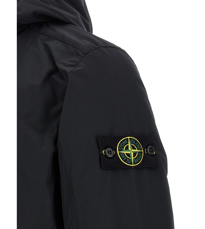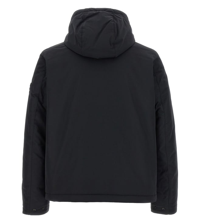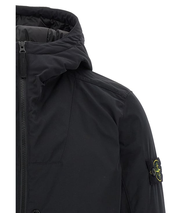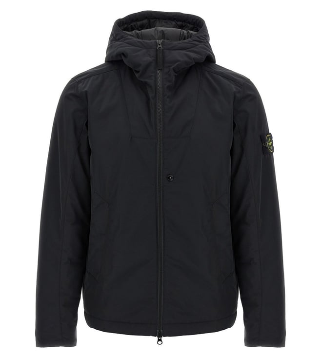 Elevate your style with the Stone Island Black Windbreaker Jacket. Hooded jacket in polyester micro twill with a soft texture and deep color, featuring primaloft gold p.U.R.E insulation and a twoway zipper fastening. Treated with antidrop. Products purchased from Darveys are supported exclusively by the warranty/exchange policies of Darveys and its partner boutiques. Brand owners and their channel partners are not responsible for exchange/warranty services for items purchased through Darveys.