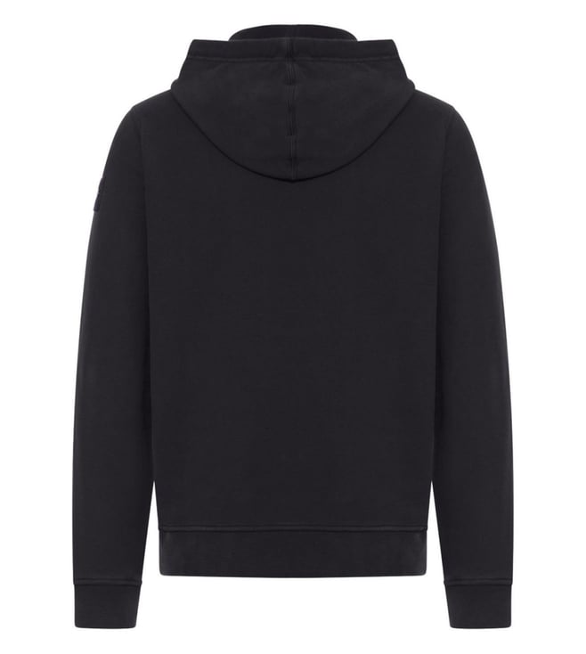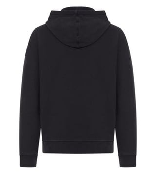 Black adjustable drawstring hood kangaroo pocket ribbed side bands ribbed cuffs ribbed bottom band logo cotton hoodie. Products purchased from Darveys are supported exclusively by the warranty/exchange policies of Darveys and its partner boutiques. Brand owners and their channel partners are not responsible for exchange/warranty services for items purchased through Darveys.
