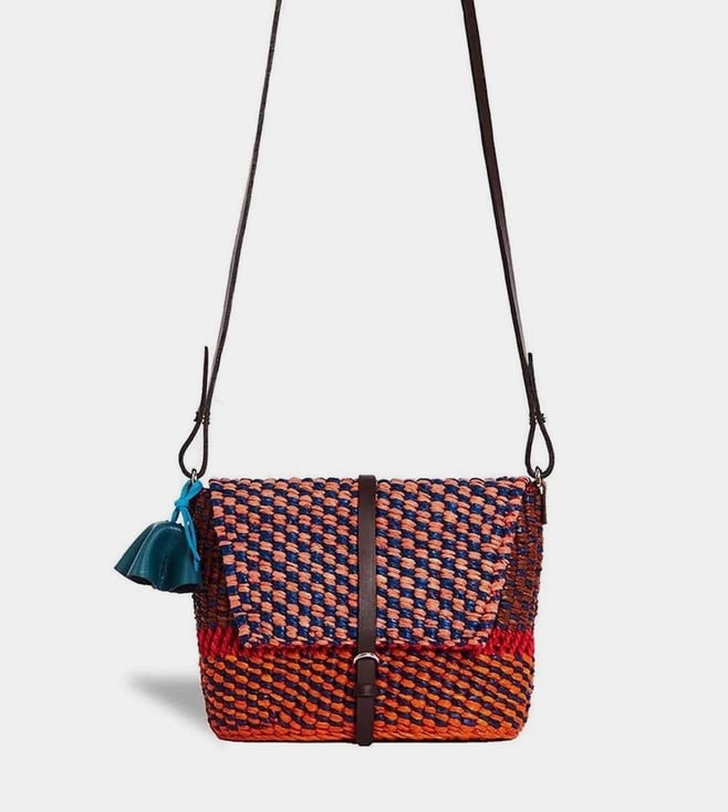 This bag is made from woven raffia and is sized to carry what you need for your outing. It has a flap opening with a leather strap to securely close the top flap with an inside pocket. This must-have can be worn across your body or over the shoulder and can transition from city streets to the bar. Disclaimer: Product colour may slightly vary due to photographic lighting sources. Country of Origin - India.