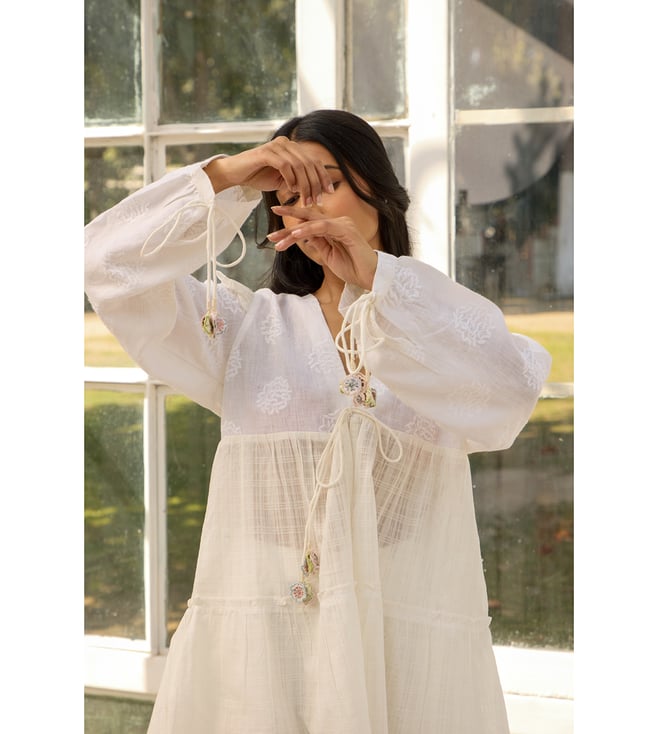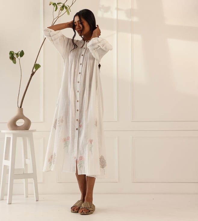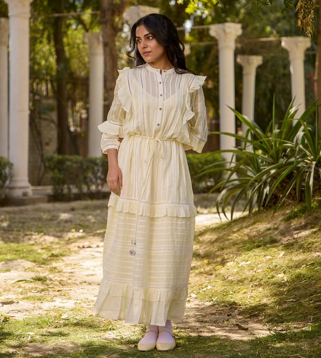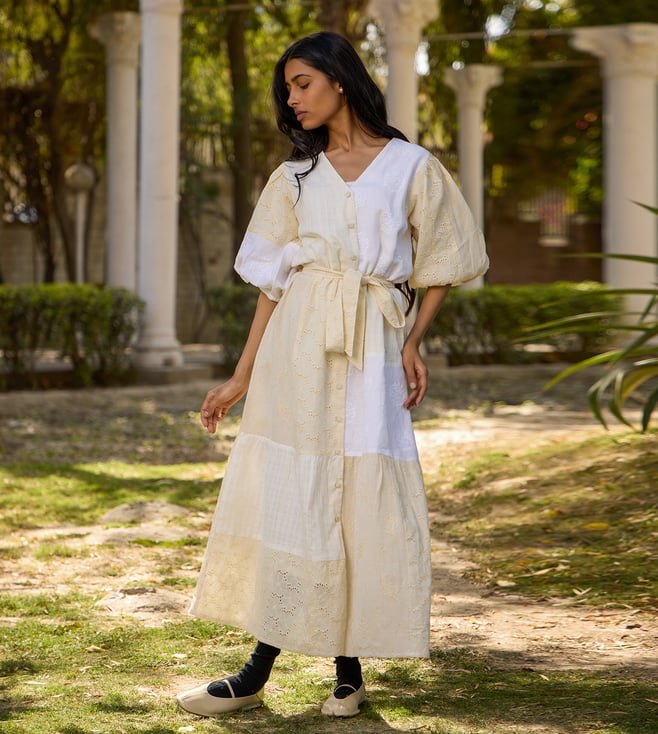 Ivory Cotton Slub Relaxed Fit Casual Dress