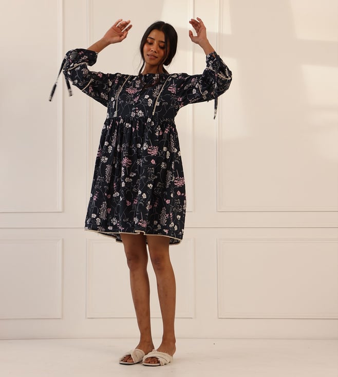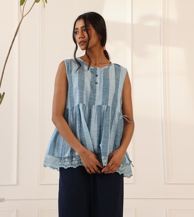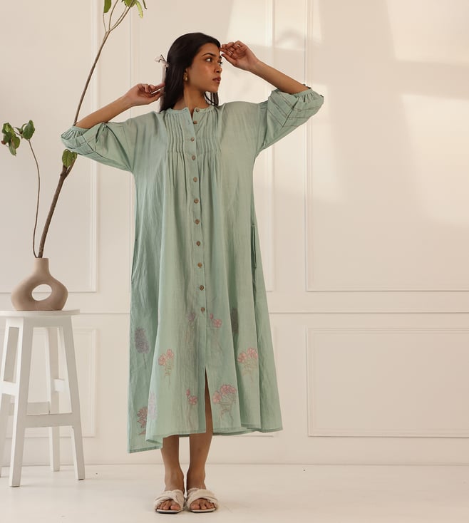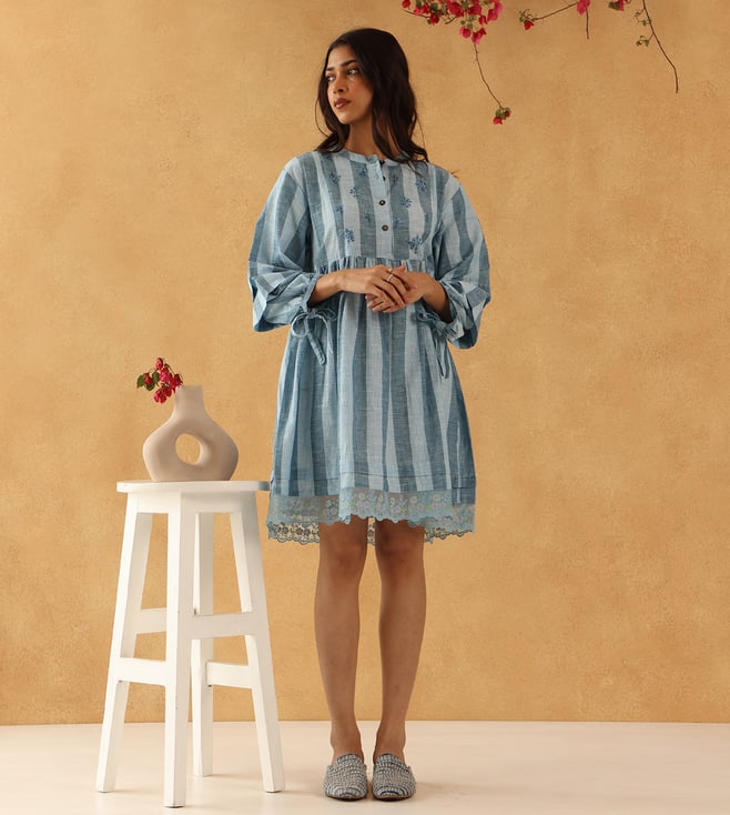 Blue Cotton Slub Relaxed Fit Casual Dress