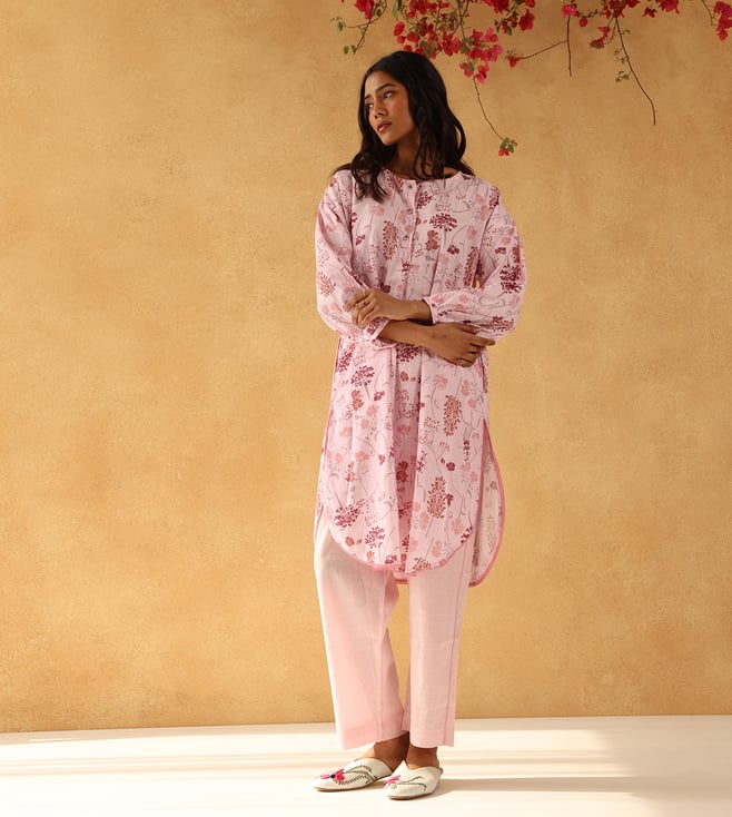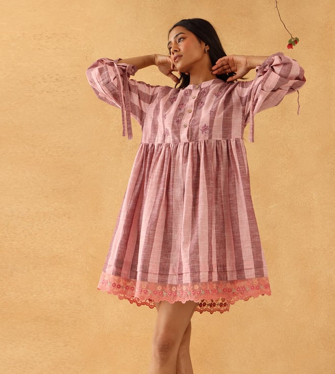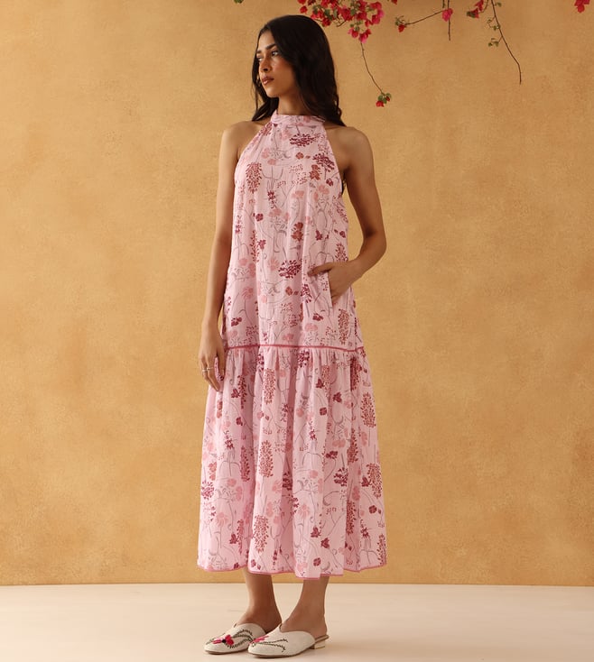 Pink Cotton Poplin Relaxed Fit Casual Dress