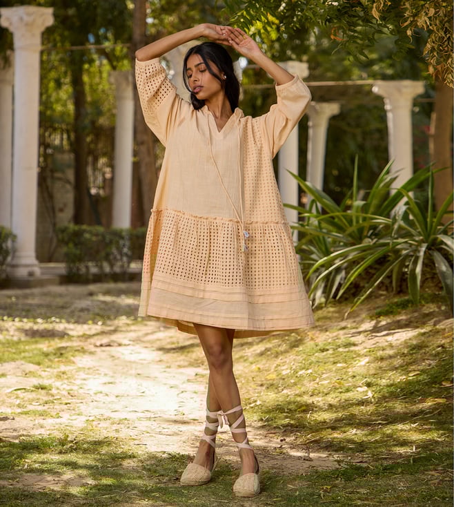 Beige Cotton Poplin Relaxed Fit Casual Dress