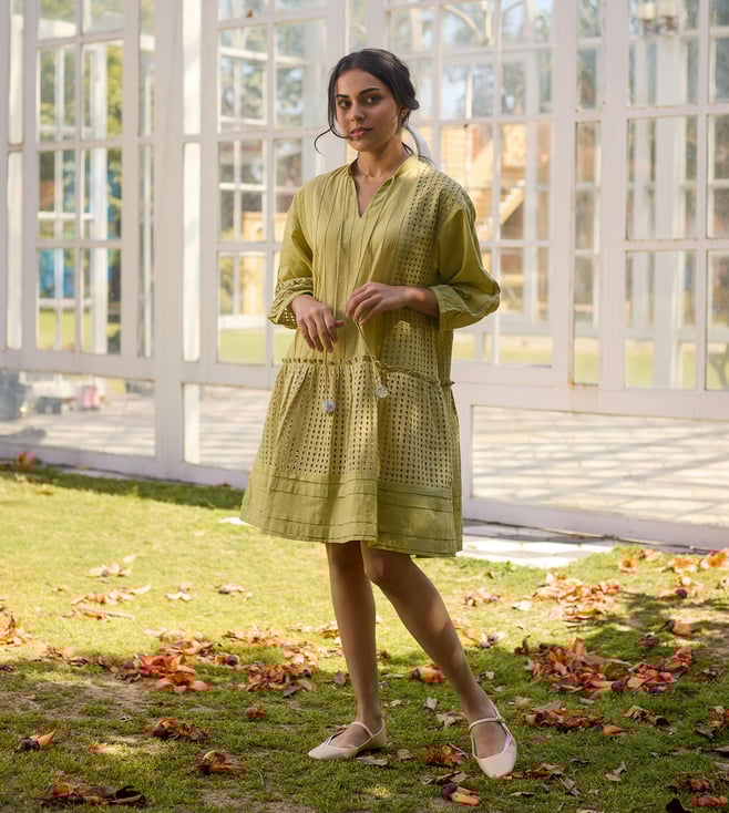 Yellow Cotton Slub Relaxed Fit Casual Dress