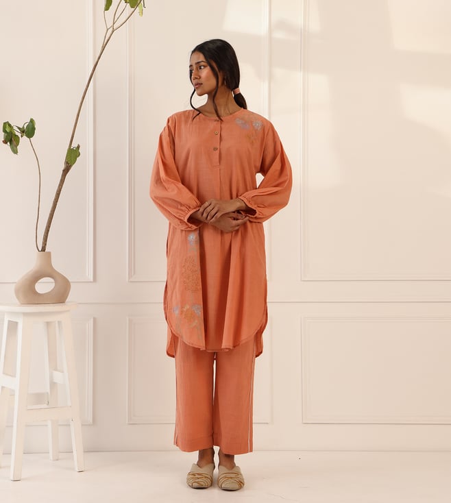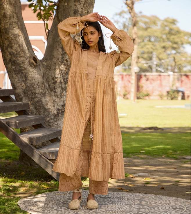 Brown Cotton Slub Relaxed Fit Kurta Set