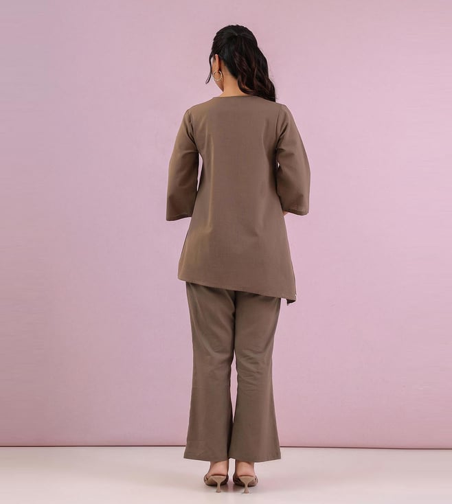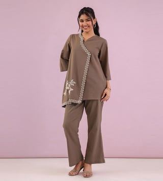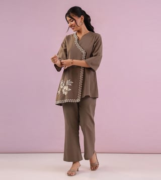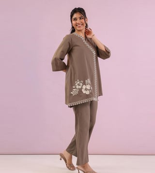 Elevate your style with our studio misri grey zahra straight fit co-ord set. This chic and modern ensemble features a tailored straight fit design that effortlessly flatters your silhouette. The coordinating top and pants make getting dressed a breeze, while the soft and breathable fabric ensures all-day comfort. Whether you're heading to the office or a night out, this set will have you looking polished and put-together. Make a statement with the studio misri grey zahra straight fit co-ord set and stand out from the crowd.