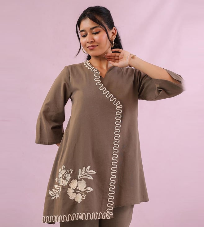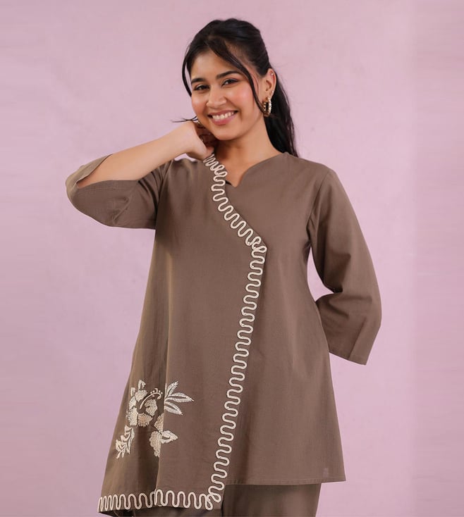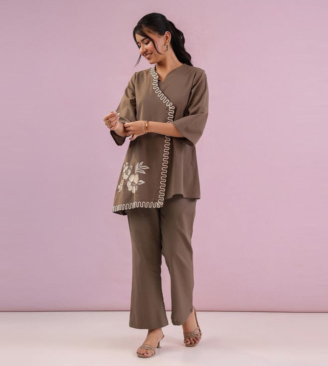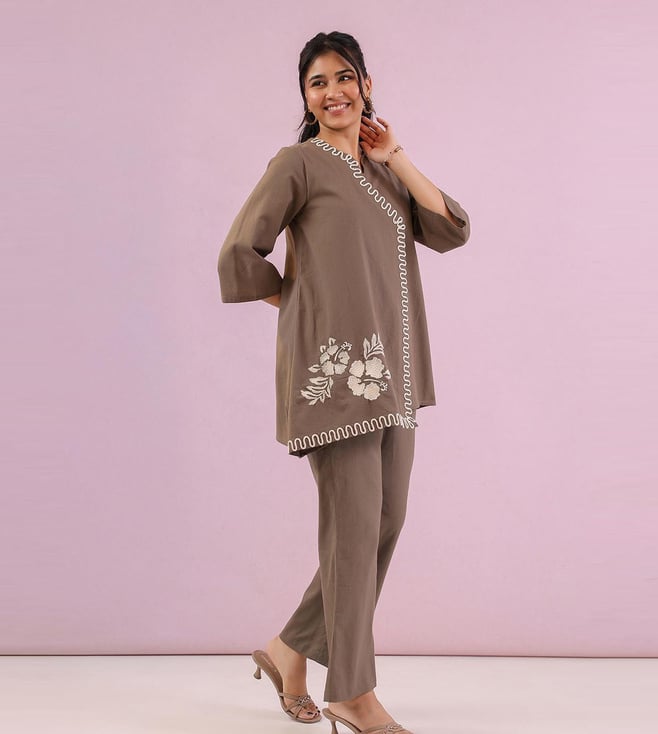 Studio Misri Grey Zahra Embroidered Straight Fit Co-ord Set
