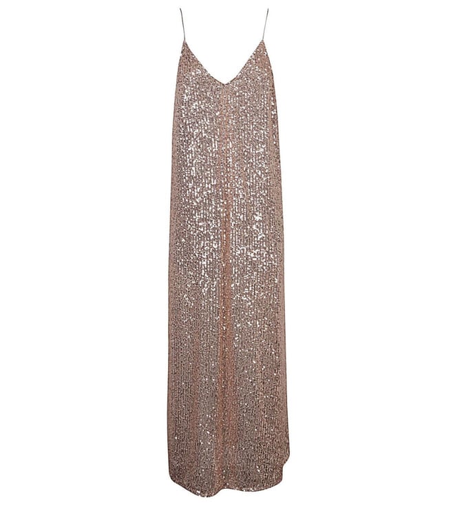 Radiate elegance in this stunning golden dress, a masterpiece of modern design. The sleeveless silhouette and V-neckline create a flattering frame, while the embellished pattern adds a touch of opulence. Crafted from a luxurious blend of 97% polyester and 3% elastane, it offers a comfortable yet form-fitting wear. The discreet closure ensures a seamless finish, making it perfect for any glamorous occasion. This dress is a testament to timeless style and sophistication, designed exclusively for women.