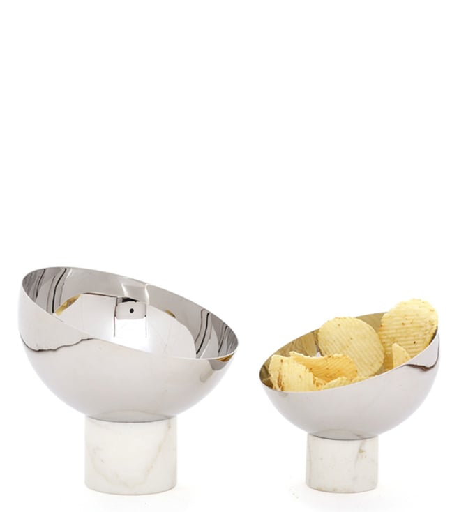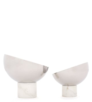 Display your refined taste in stylish serve ware collection with this set of two bowls from Studio Saswata. Enjoy your favourite food in a sophisticated way by opting for these bowls. The base is made from polished marble and flaunts a beautiful mirror finish.