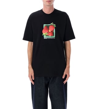 Crewneck, short sleeves, front graphic print, straight hem, pullover.