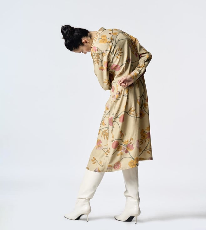 Get ready to sport a fashionable look as you slip into this dress. It has been made with precision using premium quality muga satin silk that ensures durability. It is must have as it is stylish and comfortable. Disclaimer: Product colour may slightly vary due to photographic lighting sources. Country Of Origin - India.