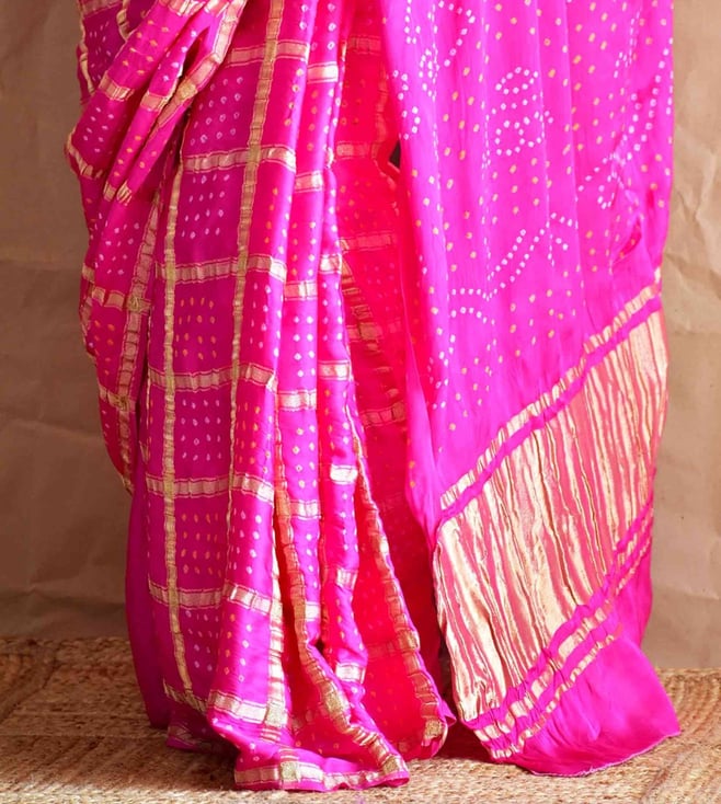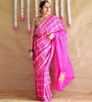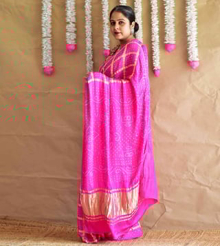 Indulge in the luxurious elegance of the Rani Gharchola modal silk saree. The stunning pink shade and hand-woven zari pallu make it the perfect choice for any festive occasion. Elevate your style and make a lasting impression with this exquisite saree. Limited stock available, order now! The blouse worn in pic is for reference purpose only and does not come with saree. You can shop our blouse collection from  Blouse This saree requires roll press, The saree is not roll pressed in pictures. 100% handmade with love in Indian villages.