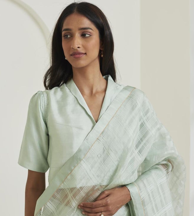 Curate a ravishing look by wearing this blouse from the Be a poem collection. This blouse is made using handwoven mulberry silk. Disclaimer: All other items in the image are only for display purposes and will not be a part of the delivery content. Product colour may slightly vary due to photographic lighting sources. Country of Origin - India.