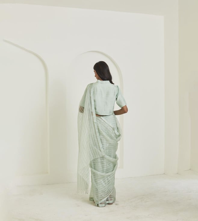 Surmaye Sea Foam Be a Poem Serenity Mulberry Organza Silk Saree