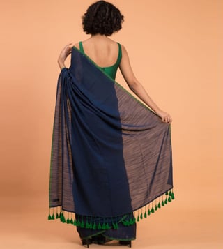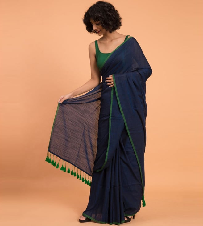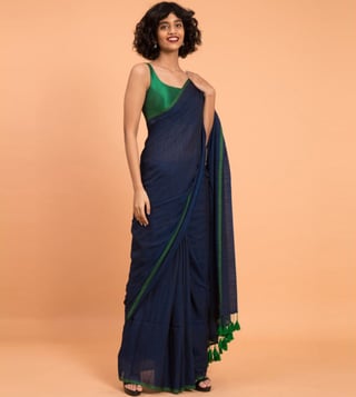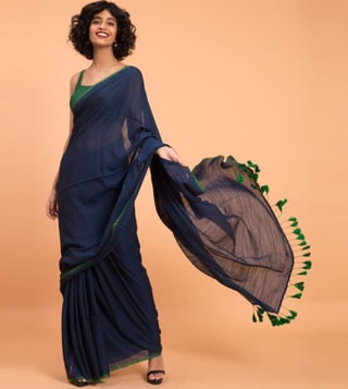 A fusion of style and comfort, this navy saree from Suta will be a smart addition to your wardrobe. Tailored to sartorial perfection from premium quality fabric, it assures a soft and soothing touch against the skin.