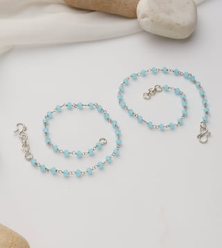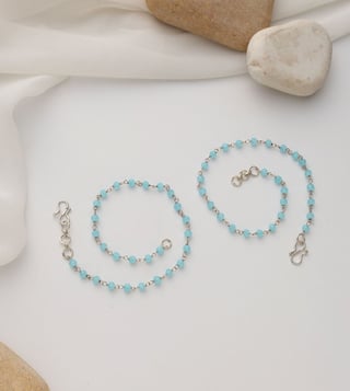 The Swabhimann Blue Beaded Anklets This women's jewellery combines traditional fabric with vibrant colors for a unique style. Disclaimer: All other items in the image are only for display purposes and will not be a part of the delivery content. Product colour may slightly vary due to photographic lighting sources. Country of Origin - India.
