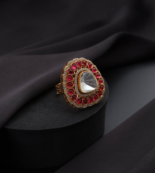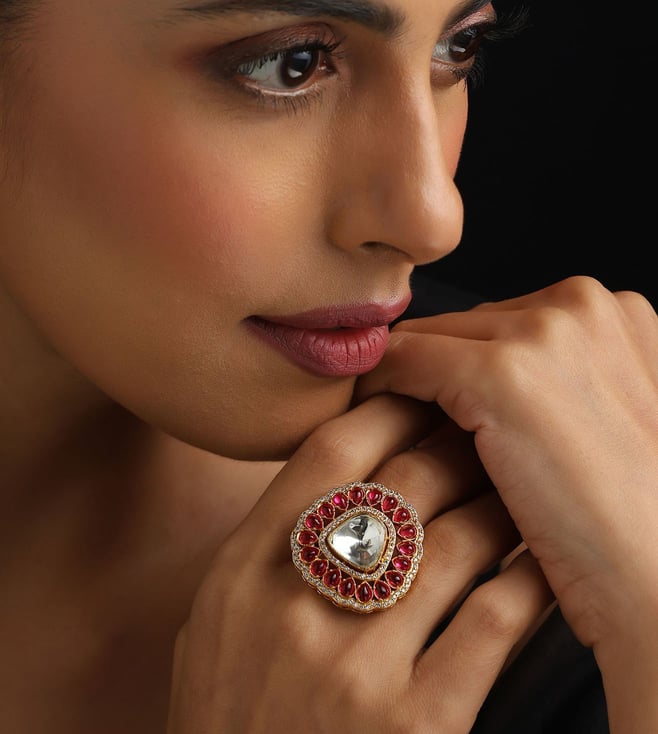 Elevate your style with the Designed for women, Swabhimann Red Polki Adjustable Ring this vibrant piece combines comfort and elegance. Disclaimer: All other items in the image are only for display purposes and will not be a part of the delivery content. Product colour may slightly vary due to photographic lighting sources. Country of Origin - India.