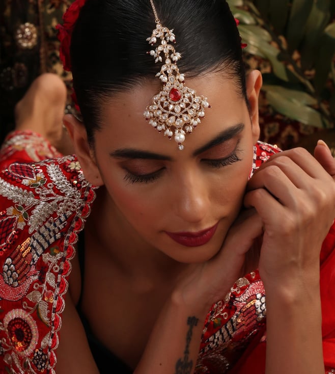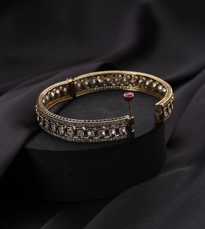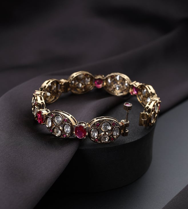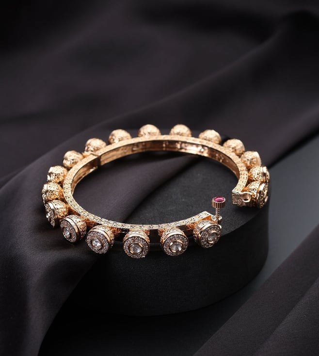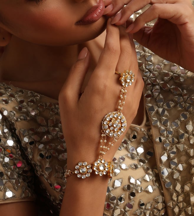 White Gold Tone Kundan and Pearl Anklets