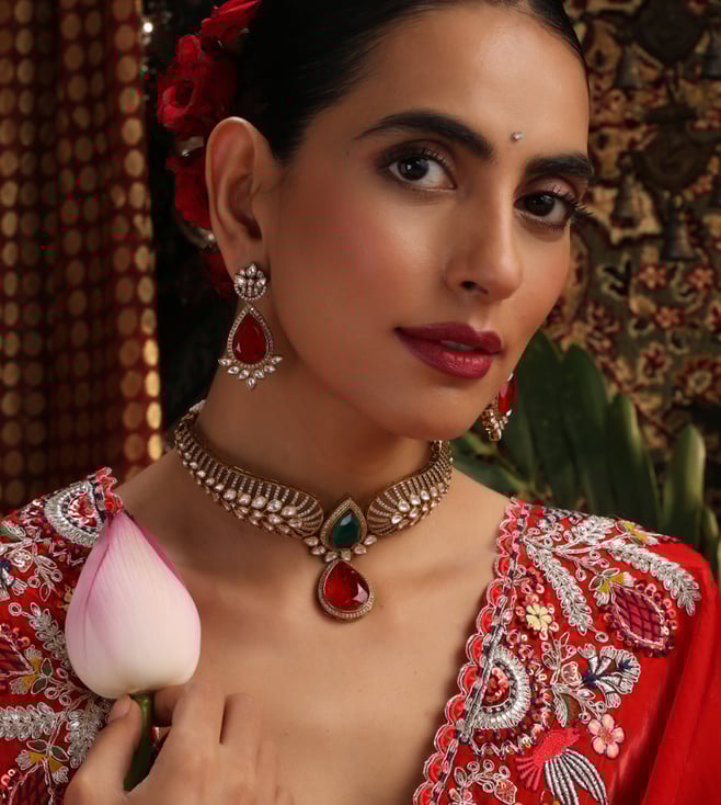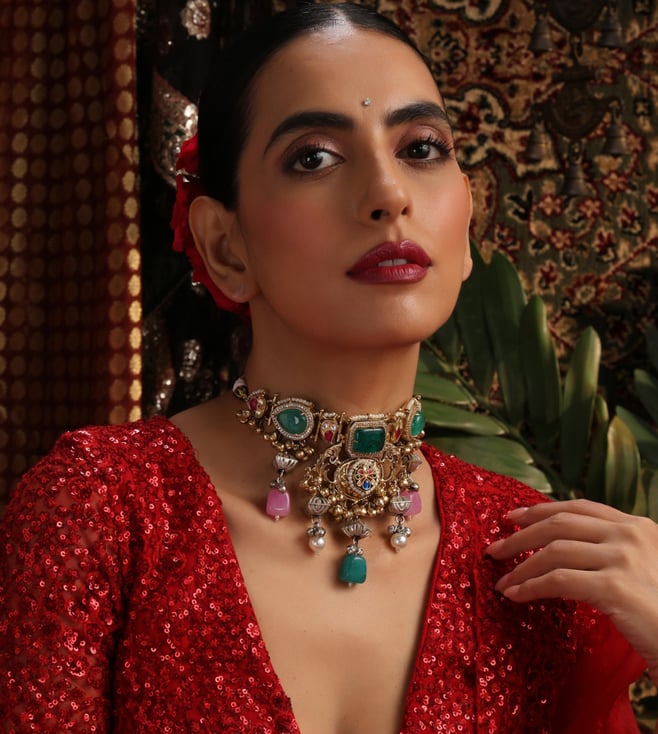 Multicolor Emerald Polki Choker Necklace & Earring Set