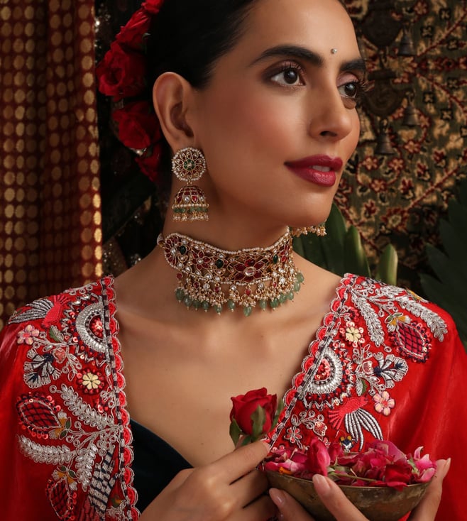 Multicolor Jadau Choker Necklace & Earring Set