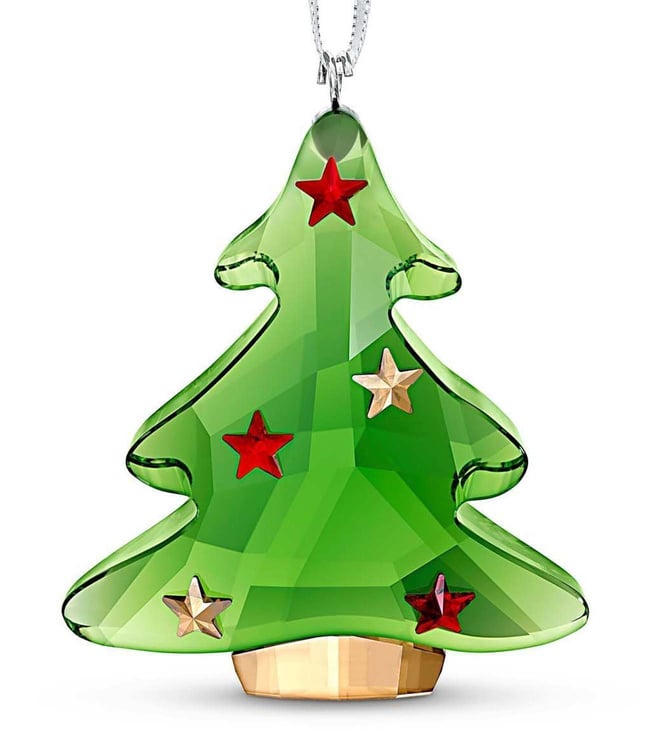 This Swarovski Christmas tree ornament adds a festive touch to its surroundings. Decked in sparkling crystals, the shining green tree and its crystal trunk reflect the light with 226 facets. It hangs from a beautiful satin ribbon, allowing the stars to reflect incoming light into bright sparkles. It will be a wonderful gift or an addition to your festive decorations. It is an object of decoration and not a toy. It is not suitable for children under 15 years.