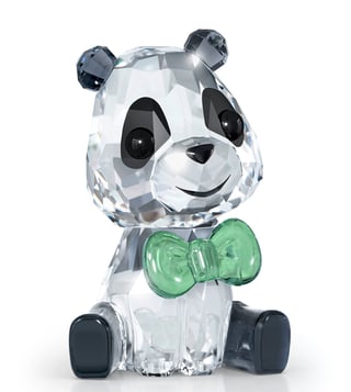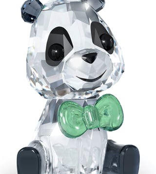Dressed in a smart bow tie, this adorable depiction of Plushy the Panda art piece brightens anyone's day. Expertly crafted with 277 facets of a clear, black, green, and gray crystal, this adorable baby panda is a charismatic symbol of balance and gentle strength. A fantastic gift idea. Decoration object. Not a toy. Not suitable for children under 15 years.