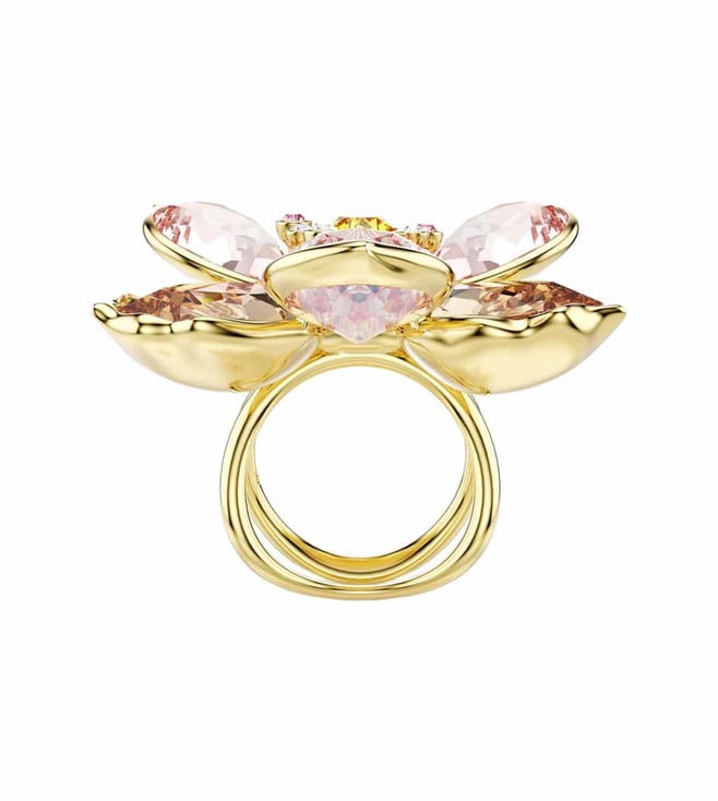 Imagination blooms in this gold tone plated ring from the idyllia garden. The timeless design reveals an open flower, majestically crafted with a mix of crystals in different cuts and colors. It is a wondrous way to bring soft tones and nature inspired joy into your style. This ring can be worn alone or paired with a matching pendant or earrings from the same family.