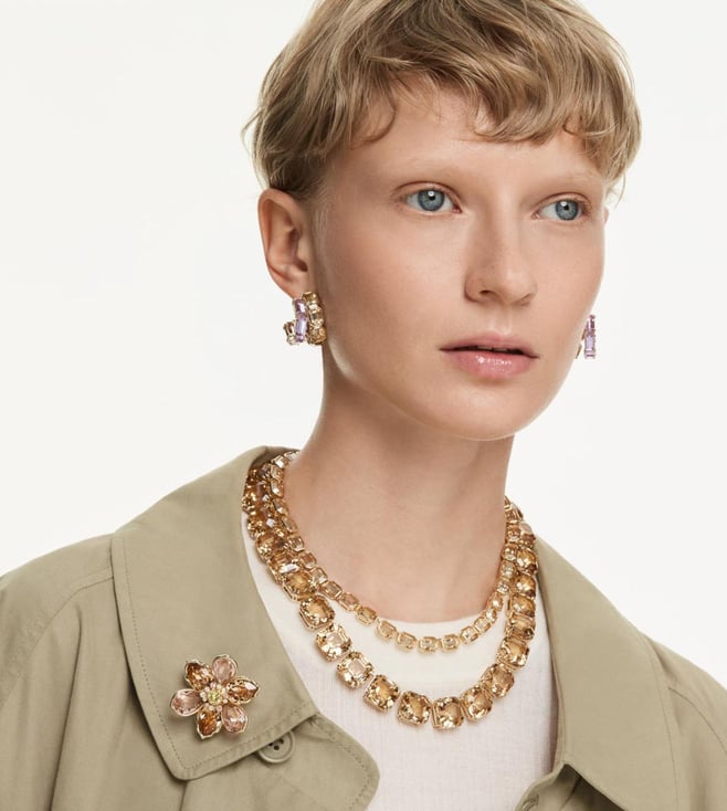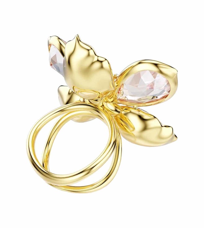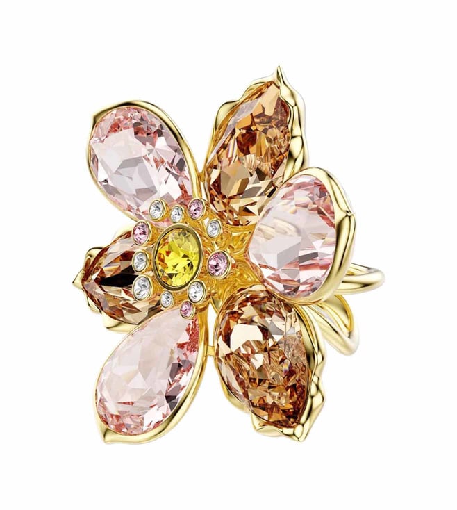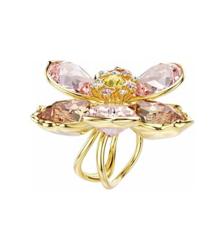 Imagination blooms in this gold tone plated ring from the idyllia garden. The timeless design reveals an open flower, majestically crafted with a mix of crystals in different cuts and colors. It is a wondrous way to bring soft tones and nature inspired joy into your style. This ring can be worn alone or paired with a matching pendant or earrings from the same family.