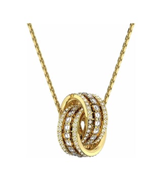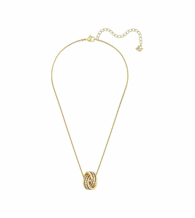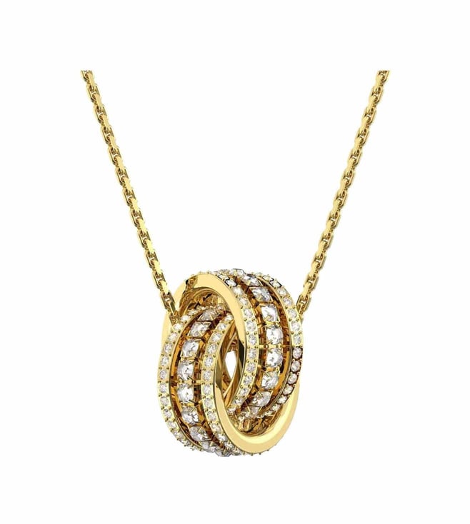 Go for bold with this opulent gold tone plated necklace. Designed with a classic cupchain setting, this intricate piece features interlocking loops embellished wish clear crystal pava. Mix and match it with other pieces from the hyperbola family.