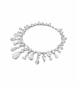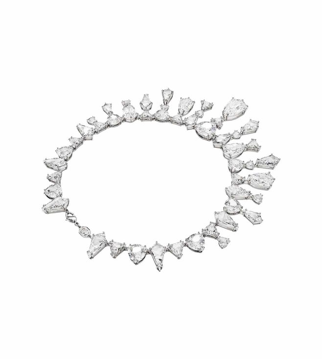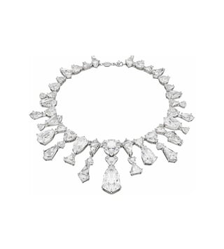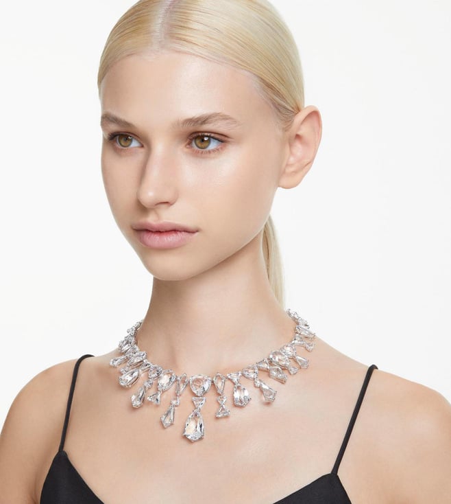 Ignite your style with the dramatic detailing of this mesmera necklace. Made for extravagant luxury, the rhodium plated design has been crafted with an all round array of facetted crystals. The mixed cuts and sizes are a tribute to swarovski renowned savoir faire, giving you a piece of jewelry that is wondrous and hypnotic. Gift this to a loved one as their ultimate statement choice.