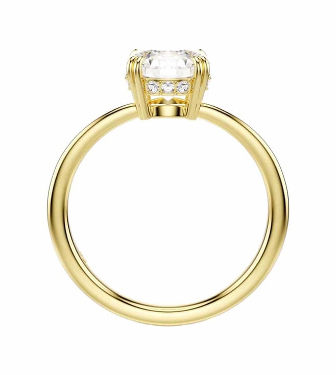 Shining like a star in the night sky, this stilla ring is set to become your new favorite. The gold tone plated band features an elegant princess cut swarovski zirconia, set in a double prong setting, and with delicate pava alongside. Wear solo or stacked with different metal tones for a contemporary finish.
