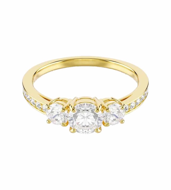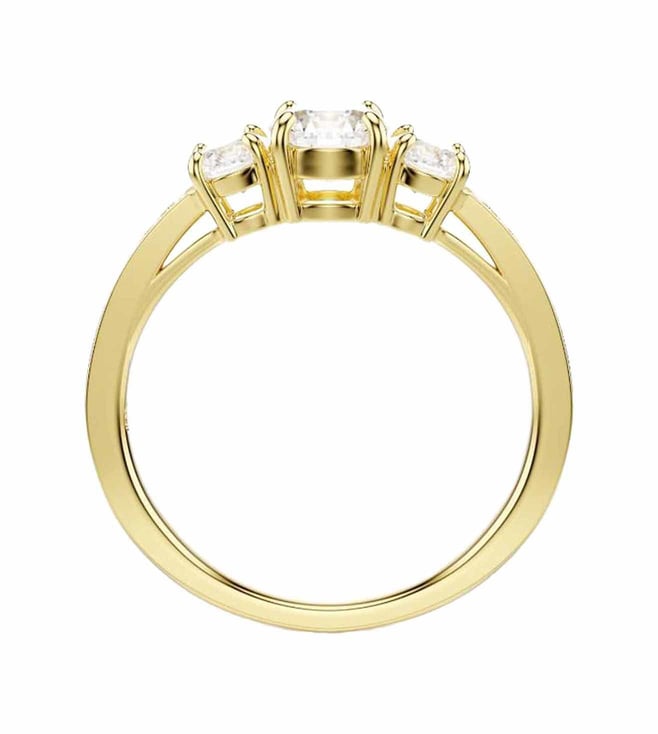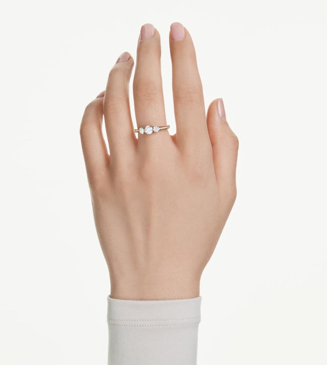 Crafted for every occasion, the stilla family evokes pure elegance. This classic ring takes radiance to the next level with clear crystals along the shank and a trio of precision cut swarovski zirconia on a shining gold tone finish. A beautiful piece of jewelry for everyday that can be easily matched with other pieces from the same family.