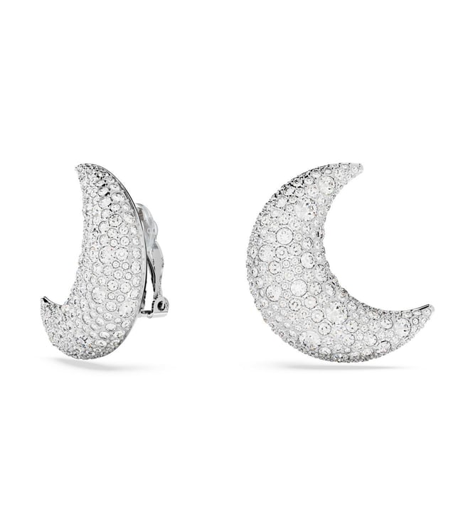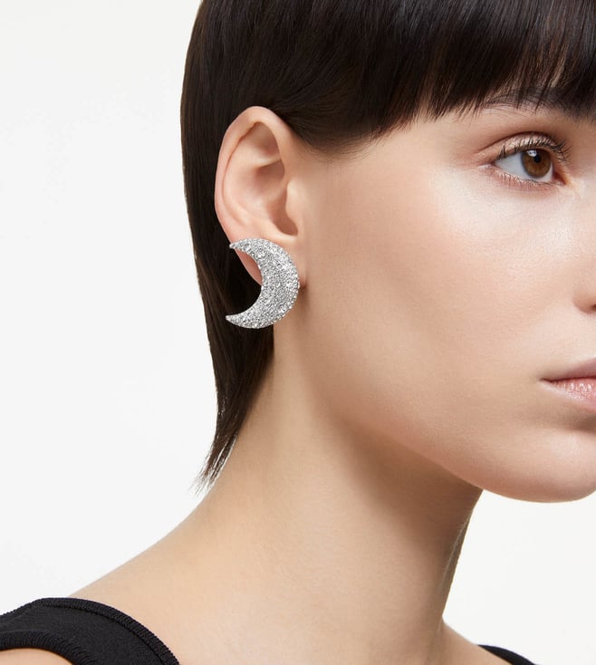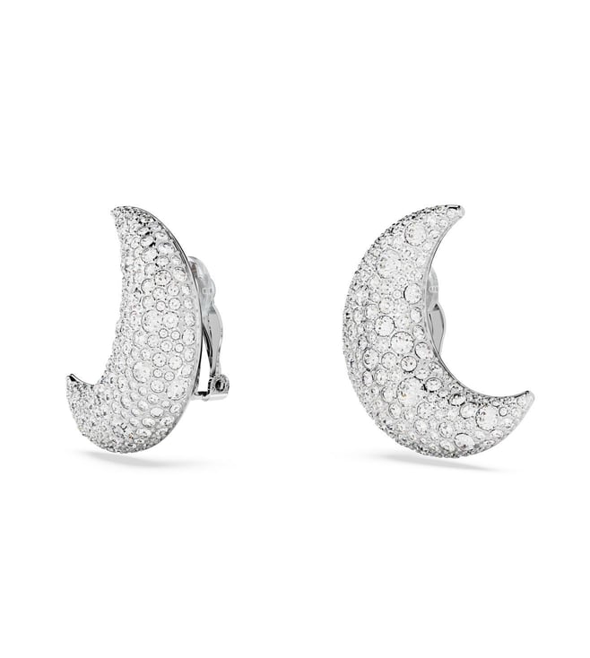 Moon gazing inspiration meets dazzling style in these studs from the Luna family. The rhodium plated design features an elegant pair of crescent moons, each embellished in five different sizes of crystals for a refined pave effect. Clip on and step out for an evening under the stars. Product Dimensions - Size - 3.1 cm x 3 cm