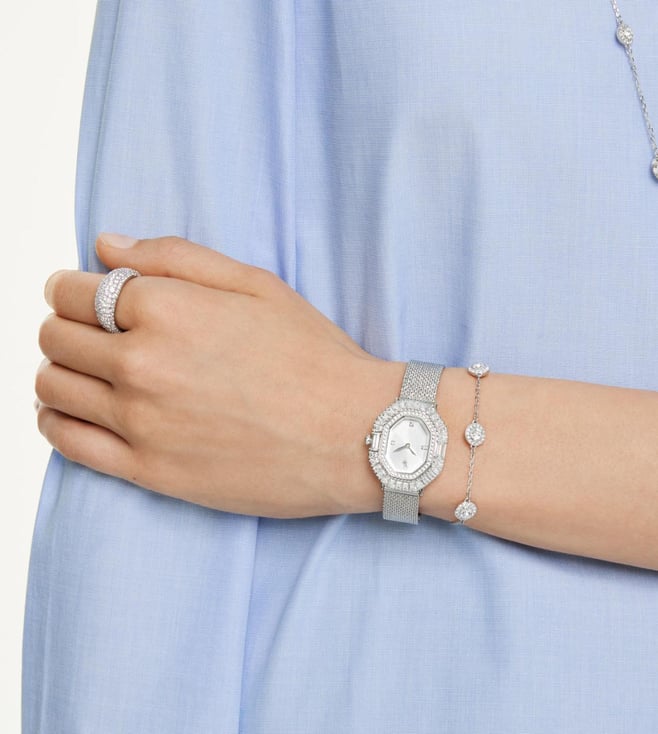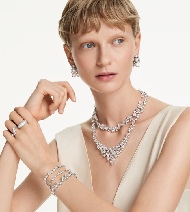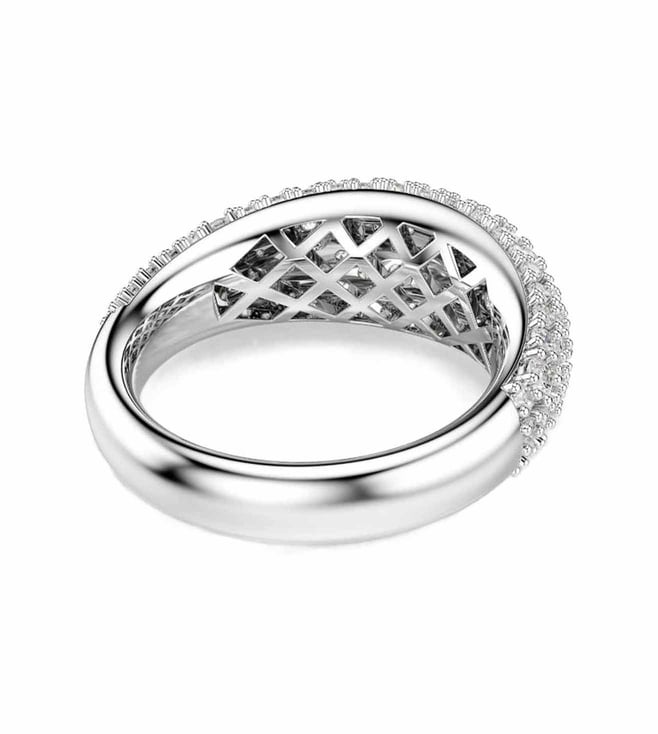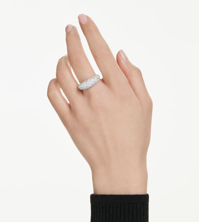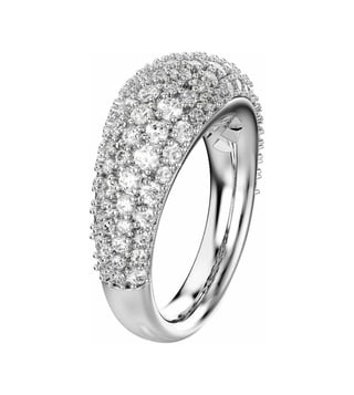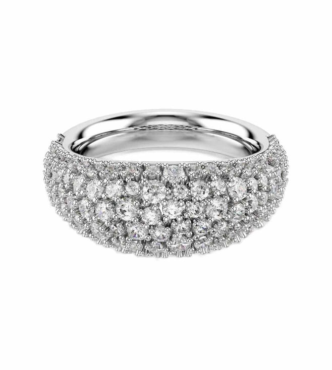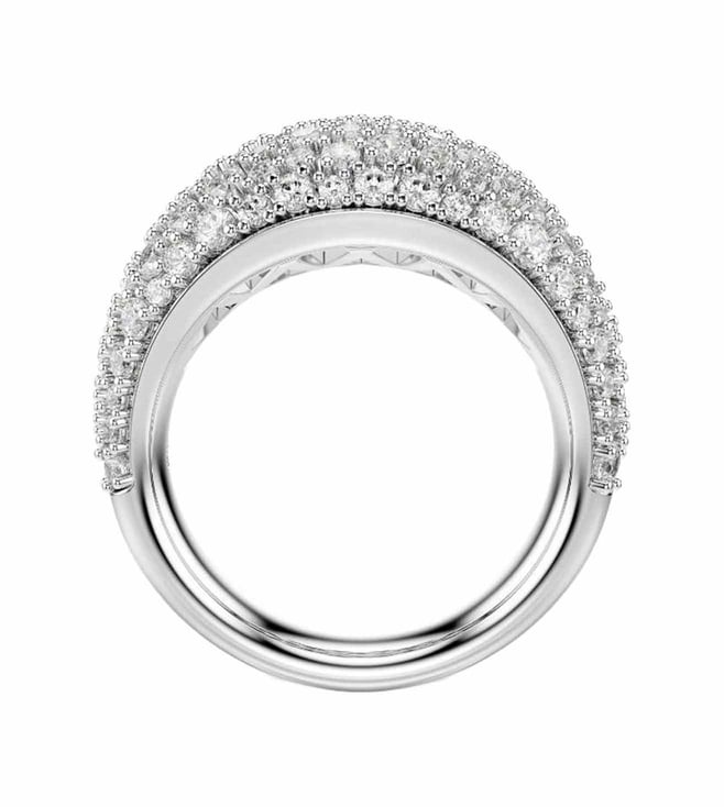 Designed for maximum impact, this domed ring is crafted in rhodium plating and features a stunning decoration of clear swarovski zirconia, set in place using the chatonnage technique. Ideal for moments when elegance and wonder is called for.