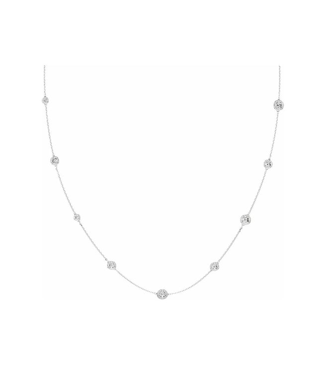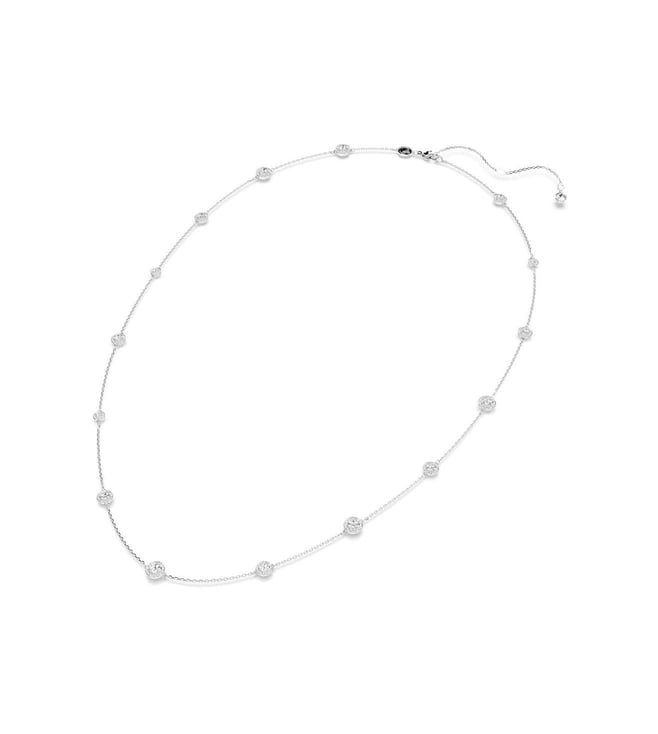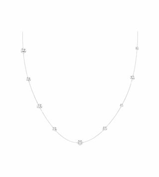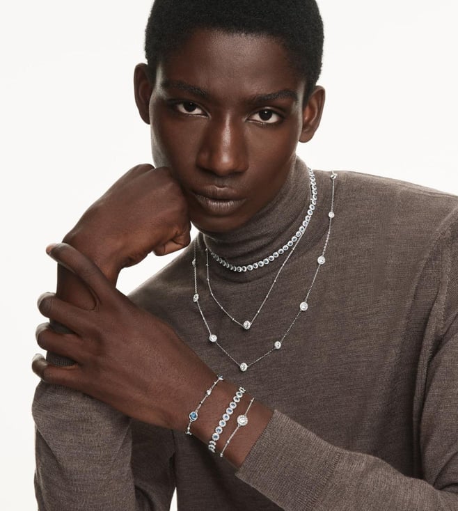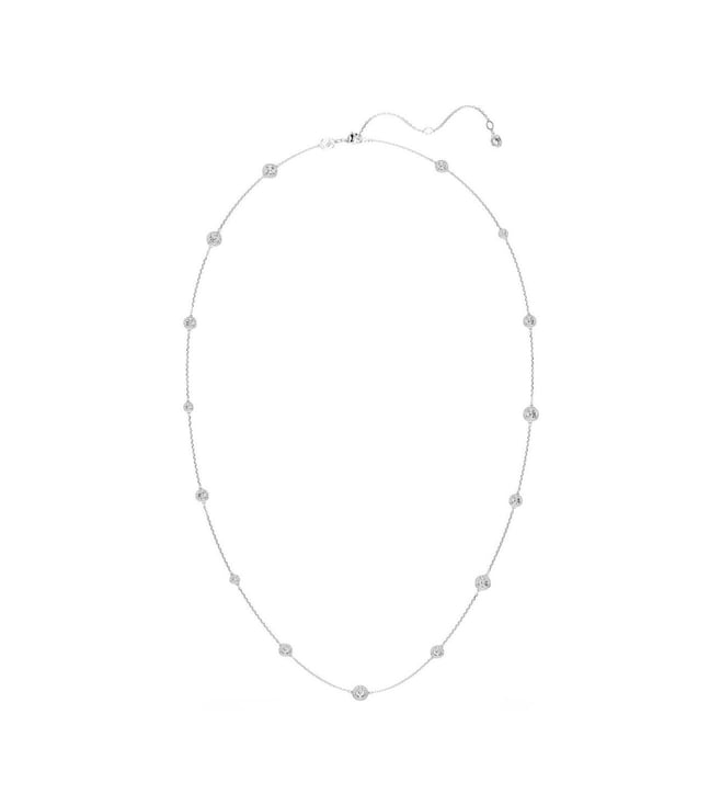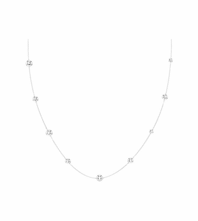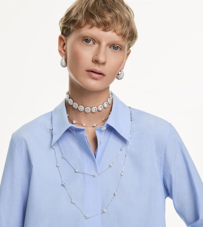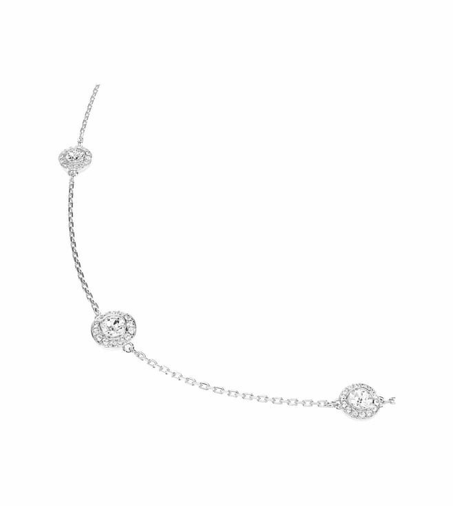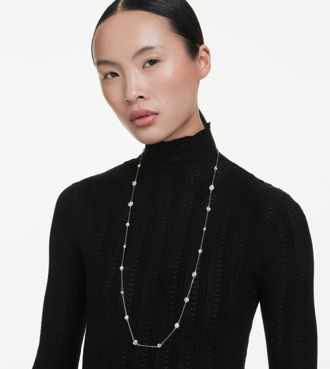 This versatile strandage lets you play with your style. Perfect for layering, the long rhodium plated chain is accented with glittering double sided motifs. Simply reverse the jewelry to showcase a different display of round cut crystals. Mix and match with other una angelic pieces for a look of ultimate radiance.
