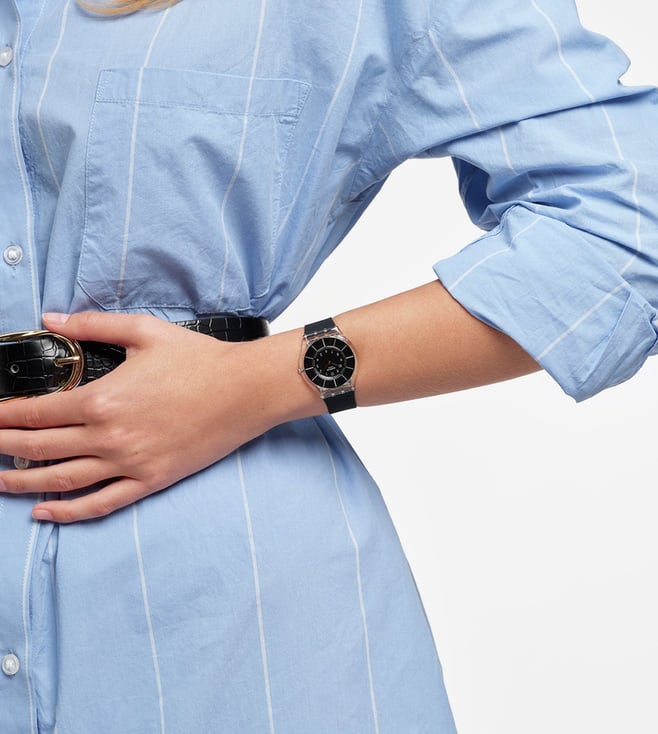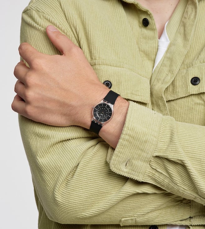 The name says it all, BLACK CLASSINESS (SS08K103) is a stylish wristwatch with a super-thin black silicone strap and clear polymer case. The solid black dial is the definition of elegance with its silvery indexes.