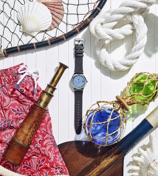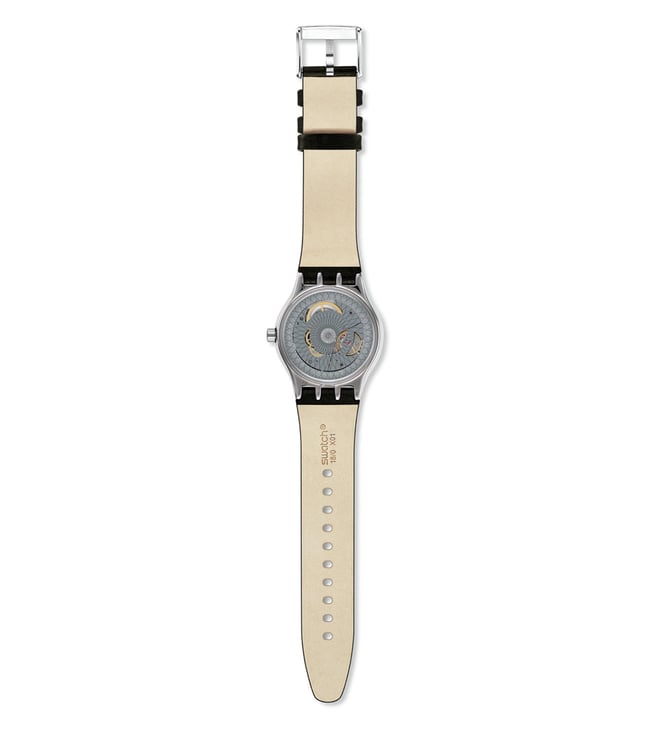 Swatch X Hackett introduces yet another stylish collaboration between two creative and classic brands that let imagination lead the way. CLASSIC LINES (YIZ405) is true to its name with thin lines stacked next to each other on the sky blue dial. The dark brown leather strap gives this stainless steel watch a handsome flair. Turn the watch over for an unobstructed view of the mechanical movement inside.