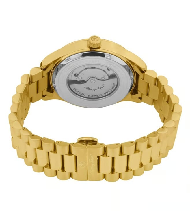 Add a stylish dimension to your look by wearing this watch from Mathey Tissot. The automatic movement ensures reliable timekeeping, while the versatile design complements any outfit. With a 50 m water resistance, it is an essential accessory for those who value elegance and practicality. It is scratch resistant and comes with a transparent case back.