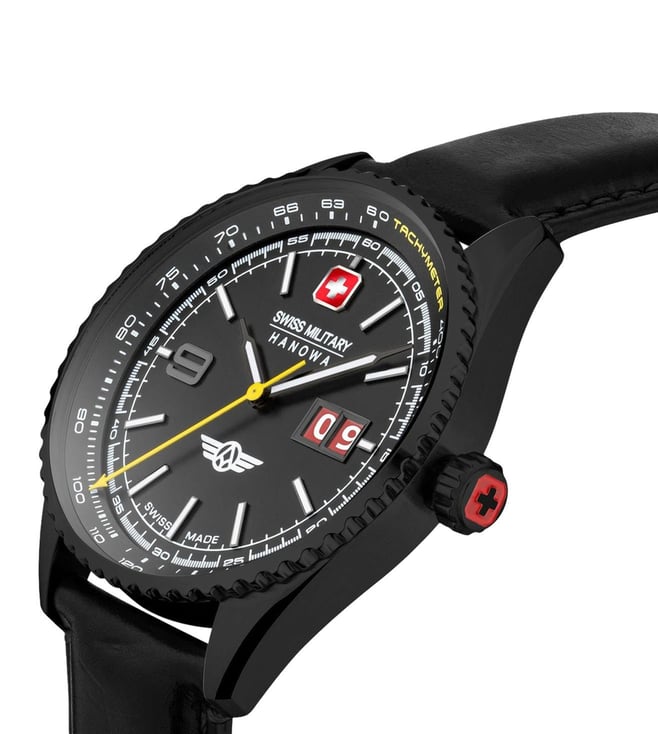 Introducing the SWISS MILITARY HANOWA SMWGB2101030 AFTERBURN Analog Watch For Men, a sleek and sophisticated timepiece that combines style and functionality. Crafted with precision Swiss engineering, this watch exudes quality and durability. Featuring a bold design with a black dial and stainless steel bracelet, this watch is perfect for the modern man who values both fashion and practicality. With water resistance up to 100 meters, you can confidently wear this watch for any occasion. Elevate your wrist game with the SWISS MILITARY HANOWA AFTERBURN Analog Watch For Men.