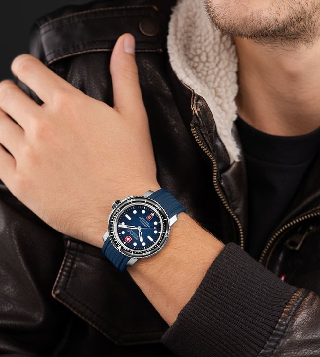 Introducing the SWISS MILITARY HANOWA SMWGL0002002-SET MAITRE PLONGEUR Analog Watch for Men, a sleek and sophisticated timepiece designed for the modern gentleman. With its durable stainless steel construction and water-resistant capabilities, this watch is perfect for adventurous spirits and water enthusiasts. The striking design and precise Swiss movement ensure both style and functionality, making it a must-have accessory for any man on the go. Elevate your look and stay on time with this exceptional Swiss Military watch.