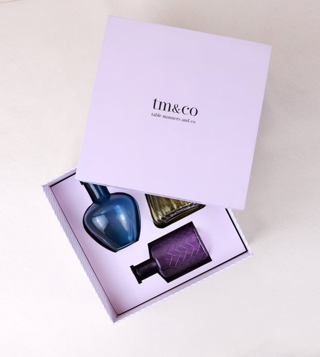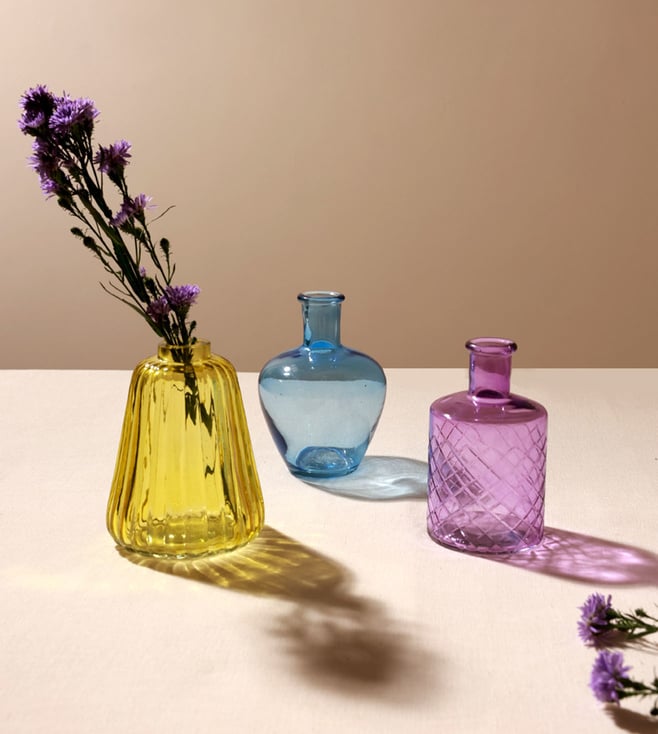 Yellow, Blue, Purple Glass Bud Vases (Set Of 3)