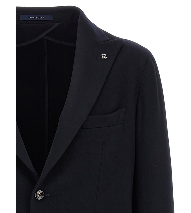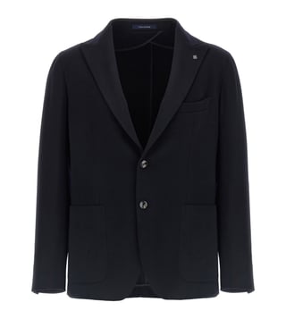 Elevate your style with the Tagliatore Black Blazer. Blazer jacket, single-breasted deconstructed with front button closure, unlined, peak lapels with removable metal brooch, breast pocket, patch pockets, cuffs with open buttonholes, back vents. True to size fit. Products purchased from Darveys are supported exclusively by the warranty/exchange policies of Darveys and its partner boutiques. Brand owners and their channel partners are not responsible for exchange/warranty services for items purchased through Darveys.