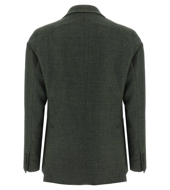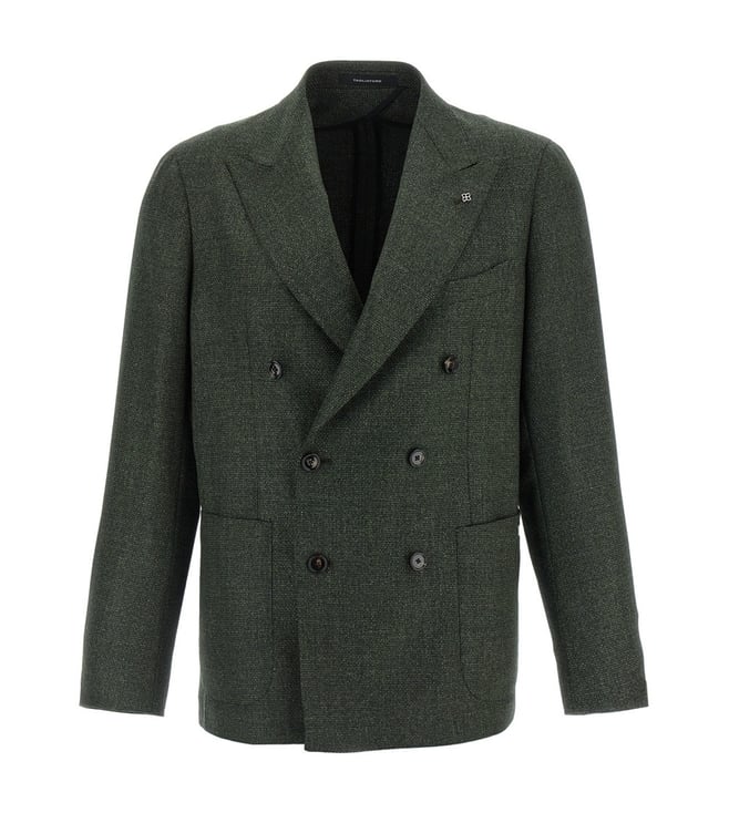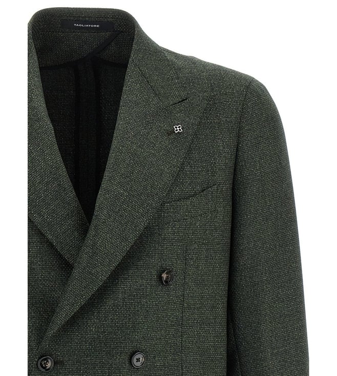 Elevate your style with the Tagliatore Green Design Blazer. Super 110's wool blazer with micro check pattern, doublebreasted unstructured model with front button closure, unlined, peak lapels with removable metal brooch, breast pocket, patch pockets, cuffs with open buttonholes, back vents. True to size fit. Products purchased from Darveys are supported exclusively by the warranty/exchange policies of Darveys and its partner boutiques. Brand owners and their channel partners are not responsible for exchange/warranty services for items purchased through Darveys.