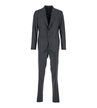 Regular fit, jacket, single-breasted, peak lapels, front button closure, one front welt pocket, two front flap pockets, buttoned cuffs, straight hem, pants, concealed front closure, pences, straight hem. Products purchased from Darveys are supported exclusively by the warranty/exchange policies of Darveys and its partner boutiques. Brand owners and their channel partners are not responsible for exchange/warranty services for items purchased through Darveys.