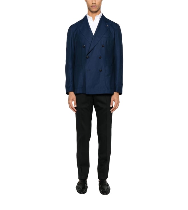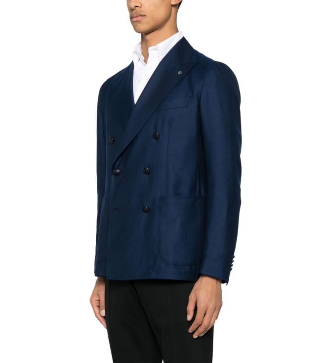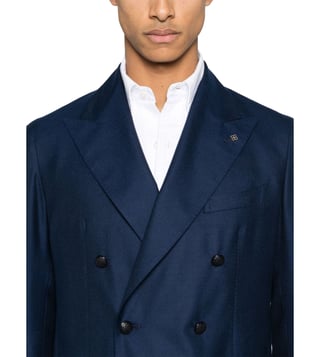 Elevate your style with the Tagliatore Navy Blue Classic Blazer. Navy blue doublebreasted button fastening two side patch pockets english rear vents brooch detail. Products purchased from Darveys are supported exclusively by the warranty/exchange policies of Darveys and its partner boutiques. Brand owners and their channel partners are not responsible for exchange/warranty services for items purchased through Darveys.